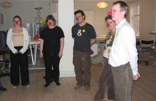 Latterkursus-branchen koger simpelthen for tiden! De røde næser sælger bedre end jod-tabletter efter en kernenedsmeltning på Barsebäck! Jeg må desværre skuffe dig med at jeg ikke kan sende dig 50 næser. Kommunernes Landsforening ville betragte mig som dybt uprofessionel, hvis jeg stod der og skulle undervise uden at alle medarbejdere havde røde næser på! Hvis Legehuset.dk ikke kan levere næserne, så køb dem et andet sted på nettet. I kan booke mig til engang i februar, eller også kan jeg se om en af mine kolleger har tid til et kursus. Men så taler vi mindst 7.000 kr. for en formiddag plus transport til og fra København. Held og lykke med det hele - og husk at grine. Det luner på arbejdspladsen.